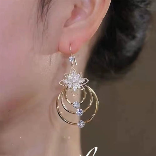 Lotus Shine – Rhinestone Long Tassel Drop Earrings for Women